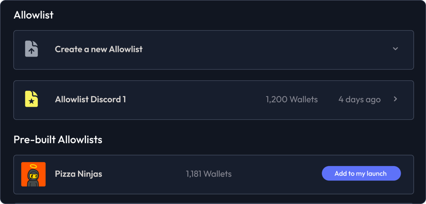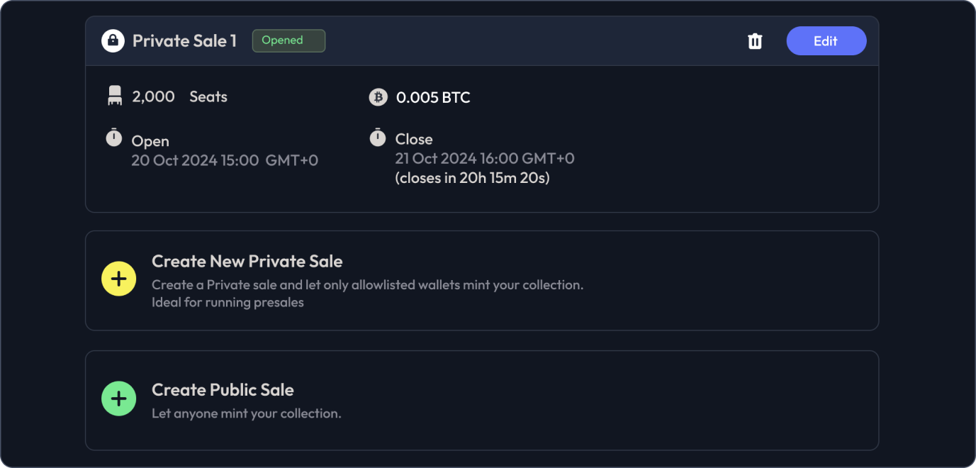 Launch directly from Studio or Canvas. Set up sales, manage allowlists, and ensure a smooth minting process. Get paid instantly with zero upfront costs.